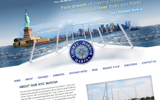The Liberty Harbor Marina features creative design making you feel like your on the open waters of the hudson! Points of entry help the user drill down to pertinent areas of the website where their information can be captured with the use of calls to action.