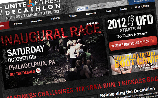 The Unite Fitness Decathlon is one of the Northeast’s toughest tests of endurance. The site perfectly represents the grittiness of the event while giving users pertinent information regarding the race and important details. The site features integration with a third-party event registration system and email marketing client for heightened client interaction.