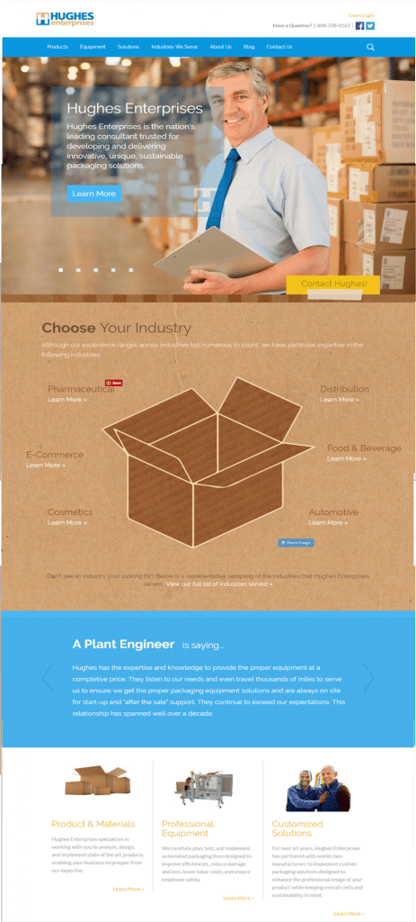 June 23rd, 2016, Colts Neck, NJ – CMDS, a leading NJ web design company, recently redesigned the website for Hughes Enterprises, the East Coast’s leader in packaging and shipping solutions (www.hughesent.com). Through a combination of innovative design and a simple, but modern, user-friendly platform, CMDS delivered a cutting-edge, high-impact solutions focused website to the Hughes Enterprise team to increase engagement, drive more leads and provide a better user experience.