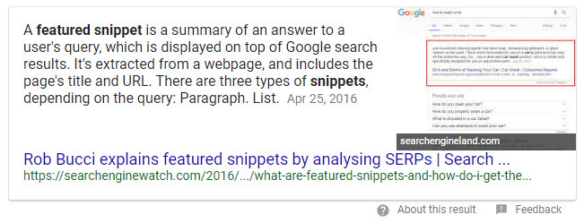 REALLY well written content gets a special bonus from Google – the Featured Snippet. The Featured Snippet is an area at the top of the results page where Google highlights a particularly relevant and useful page for searchers. Google tends to choose pages that are well-written and answer a specific question in-depth and clearly. The featured snippet link earns nearly a 9% click-through rate, so earning that coveted spot can be huge.