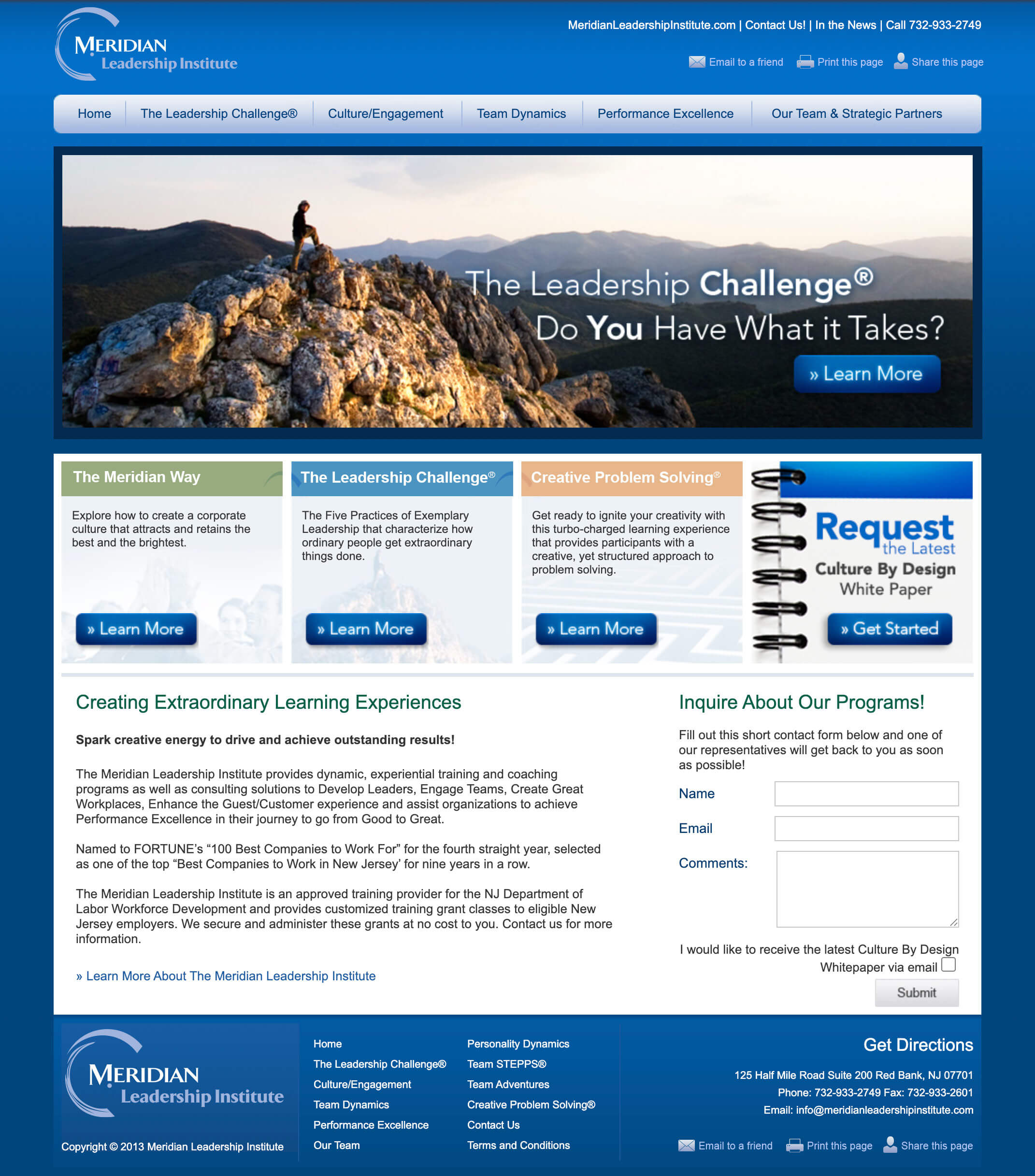 Meridian Leadership Institute's website acted as an internal portal to foster collaboration and leadership development across the Meridian Health network. CMDS created a clean, user-focused site that featured: