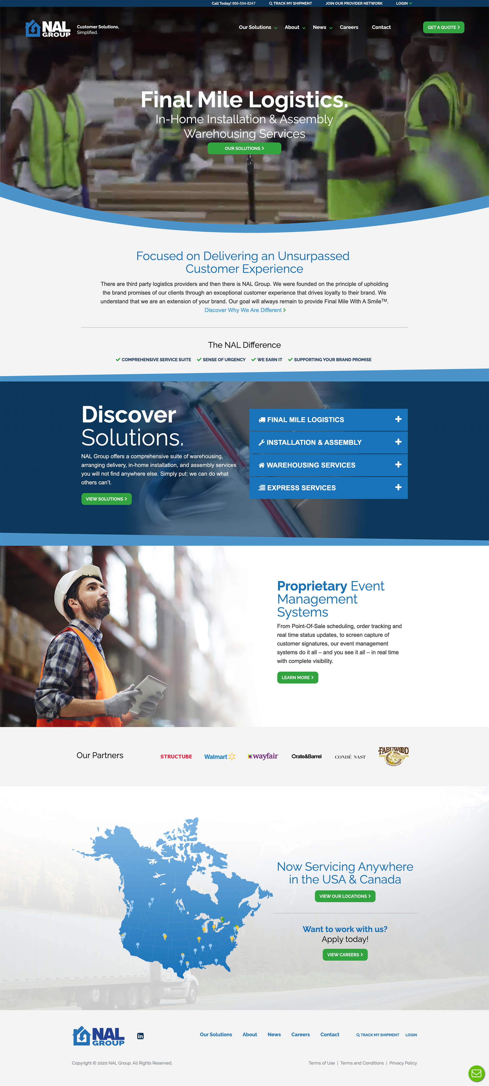 From there, CMDS designed and developed a new website for NAL Group that served to articulate their key value proposition to both current partners and potential investors. As part of the website, CMDS filmed a video series to help showcase what NAL Group does, from warehouse to delivery. This video was utilized throughout the website to infuse personality by featuring employees while demonstrating visually the NAL Group difference.